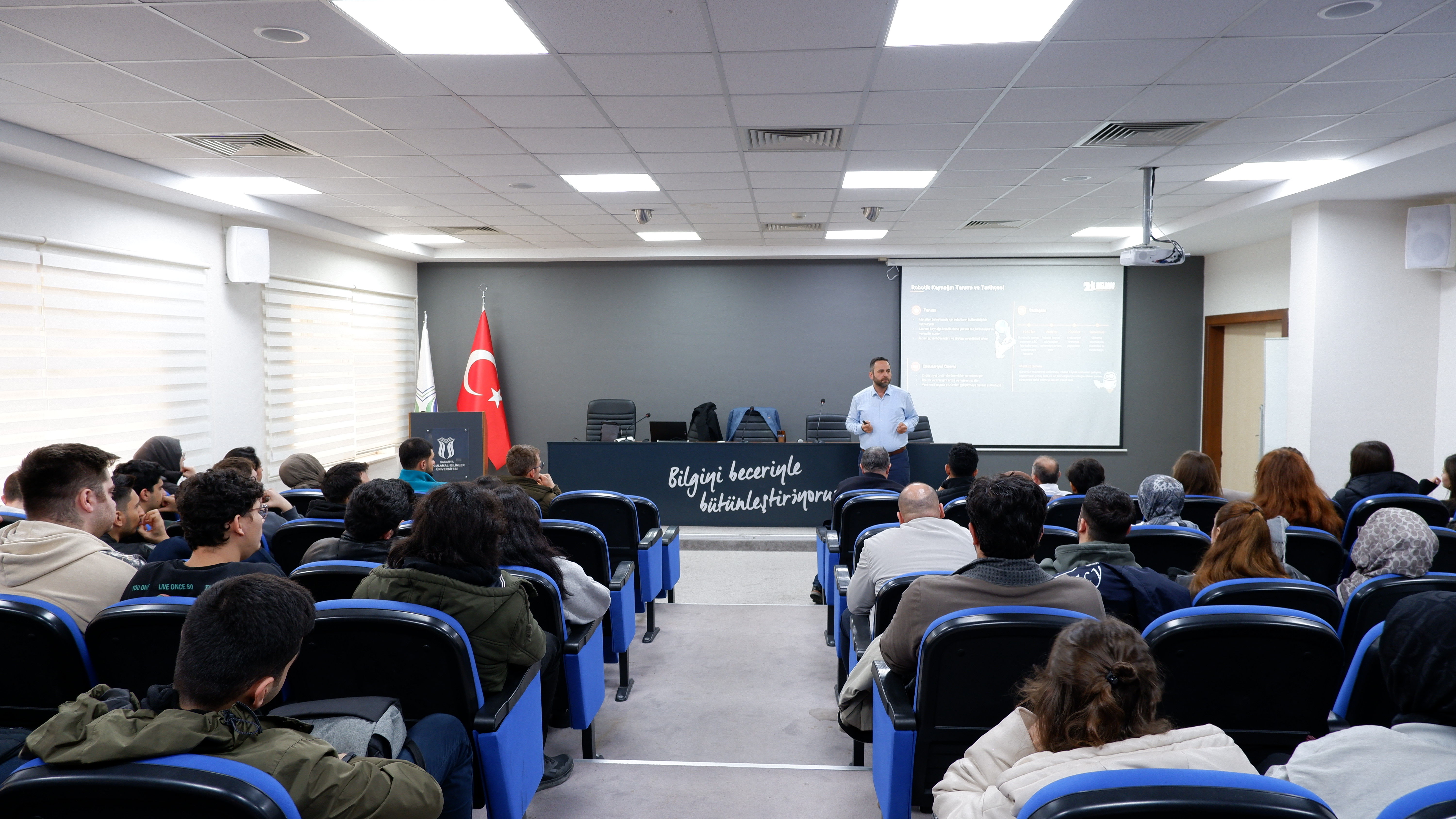 Metalurji ve Malzeme Mühendisliği Bölümü tarafından “Sektörle Buluşma Günleri” adı altında düzenlenen seminer programları kapsamında, “2KWelding” firma sahibi kaynak mühendisi Kadir BEYENAL beyefendi, bölüm öğrencileriyle SUBÜ Rektörlük Konferans Salonunda, 8 Aralık 2025 tarihinde bir araya geldi. Kadir BEYENAL tarafından, “Kaynak Teknolojilerinde Robotik Otomasyon Sistemleri ve Mühendisleri Bekleyen Gelecek” adlı bir seminer verildi. Mühendis adayı öğrencilerimize, kaynak teknolojilerinde robot kullanımının önemi ve geleceği ile ilgili bilgi paylaşımı yapıldı. Kaynak teknolojilerindeki hızlı gelişim nereye doğru gidiyor? Kaynaklı imalatta yapay zekâ kullanımı hangi aşamadadır? Bir mühendis, kendini nasıl yetiştirirse sanayide aranılır bir mühendis olabilir? Geleceğin mühendis profili nasıl şekillenmektedir? Firmaların bir mühendisten beklentileri nelerdir? gibi pek çok ilginç sorular, bu seminer kapsamında cevaplandırıldı. Bölümümüz adına, öğrencilerimize ufuk açıcı bilgi paylaşımında bulunan Kadir BEYENAL beyefendiye teşekkür eder, başarılarının devamını dileriz.