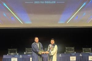 Sayın hocamız ödülünü, Rektörümüz Prof. Dr. Mehmet Sarıbıyık’ın takdimleriyle almıştır.